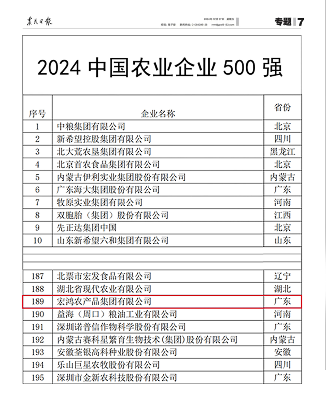 近日,農(nóng)民日?qǐng)?bào)社經(jīng)過嚴(yán)格的信息匯集、審核以及專家評(píng)議等程序,正式發(fā)布了“2024年中國農(nóng)業(yè)企業(yè)500強(qiáng)”榜單。宏鴻集團(tuán)以出色的業(yè)績表現(xiàn),再次脫穎而出,位列第189位,較去年上升67位,排名大幅提升。中國農(nóng)業(yè)企業(yè)500強(qiáng)榜單匯聚了糧油、畜牧、奶業(yè)、水產(chǎn)、食品等多個(gè)農(nóng)業(yè)相關(guān)領(lǐng)域的頭部企業(yè),是衡量農(nóng)業(yè)企業(yè)綜合實(shí)力的風(fēng)向標(biāo),深受各界認(rèn)可。自參選以來,宏鴻集團(tuán)連續(xù)四年上榜,彰顯了其在食材配送行業(yè)的深厚底蘊(yùn)和強(qiáng)勁實(shí)力。